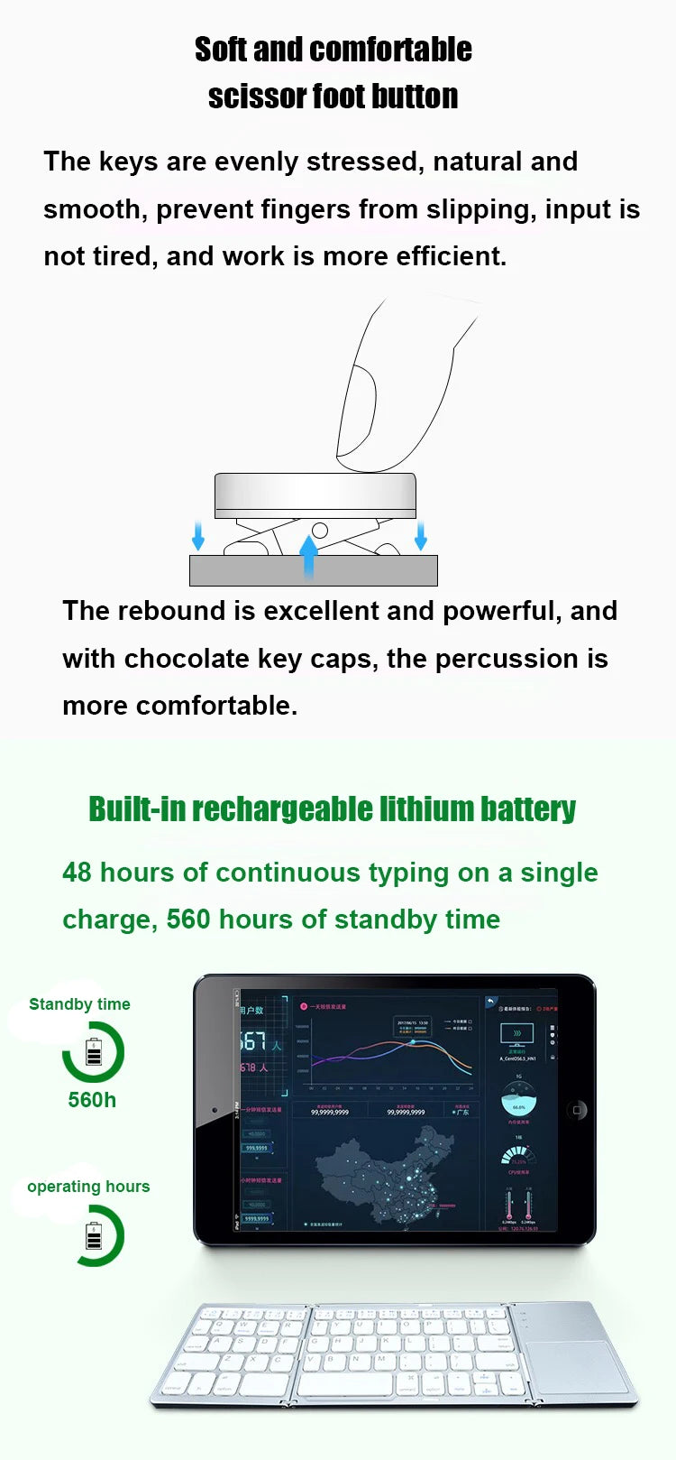 13 shortcut key functions, built-in rechargeable lithium battery, can be used continuously for nearly 48 hours on a single charge.